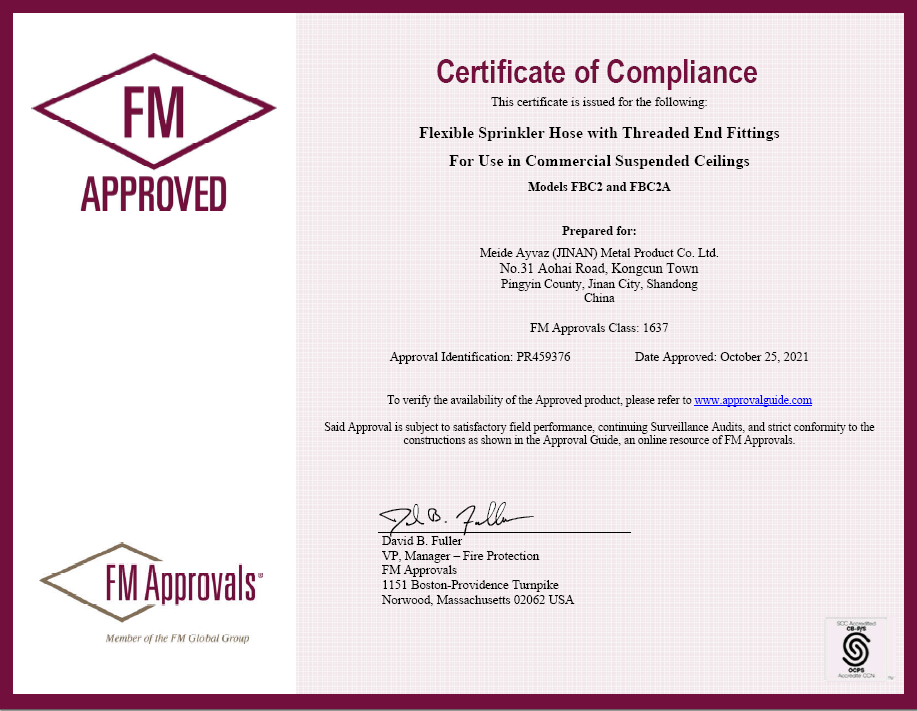 Meide Group FBC2/FBC2A series fire flexible hose have got FM certificate.