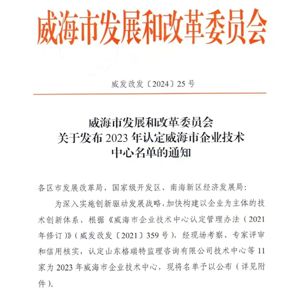 玫德集團威海有限公司深入實施創新驅動發展戰略,經現場考察、專家評審和信用核實,獲得威海市企業技術中心認定。
