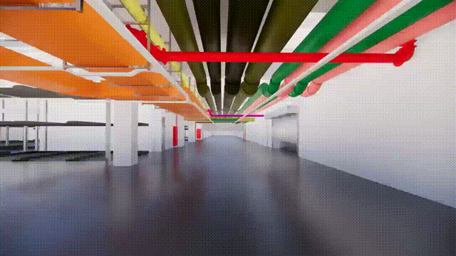 福州某地鐵項目線路總長約62.4公里。本項目成品和抗震支吊架采用全BIM深化設計,車站設備區走道狹窄,管線密集,基于現場的BIM模型,完善了支吊架施工節點和施工詳圖設計,解決機電系統內部管線標高和位置問題,避免管線產生沖突,同時滿足結構及裝修各個位置的凈空需求,提前發現支吊架交叉、碰撞,更系統地展示支吊架圖紙與實際施工之間的對應關系,減少施工安裝后的拆改,更好地控制成本。