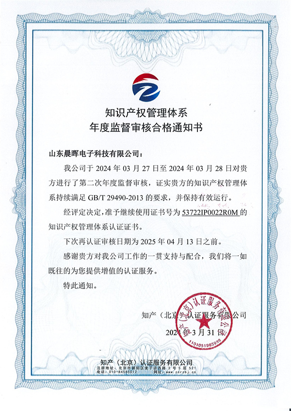 此次通過的知識產權認證監督審核,涵蓋了山東晨暉在產品研發、生產流程等方面的管理體系,充分彰顯了山東晨暉在知識產權保護和管理方面的成熟和規范。