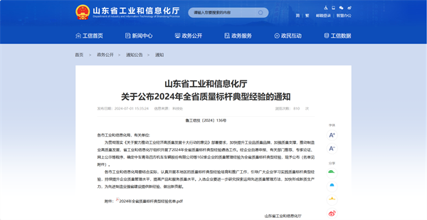 為貫徹落實(shí)《關(guān)于聚力推動(dòng)工業(yè)經(jīng)濟(jì)高質(zhì)量發(fā)展十大行動(dòng)的意見(jiàn)》部署要求,加快提升工業(yè)品質(zhì)量品牌,加強(qiáng)質(zhì)量支撐,推動(dòng)制造業(yè)高質(zhì)量發(fā)展,山東省工業(yè)和信息化廳組織開(kāi)展了2024年全省質(zhì)量標(biāo)桿典型經(jīng)驗(yàn)遴選工作。