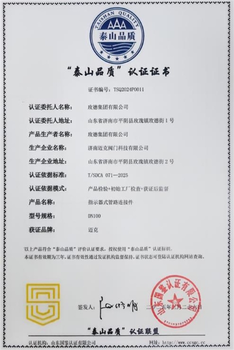 5月8日,山東省市場監(jiān)督管理局正式發(fā)布2024年度“泰山品質(zhì)”認證企業(yè)名單,玫德集團憑借卓越的產(chǎn)品質(zhì)量、技術(shù)創(chuàng)新能力和行業(yè)領(lǐng)先地位,獲得濟南市市場監(jiān)督管理局推選,成功通過嚴苛評審,榮獲這一代表山東省最高質(zhì)量水平的權(quán)威認證,成為濟南2家獲此殊榮的企業(yè)之一。此次獲評,不僅是對玫德集團長期堅守品質(zhì)初心的肯定,更彰顯了其作為全球流體輸送領(lǐng)域領(lǐng)軍企業(yè)的綜合實力。